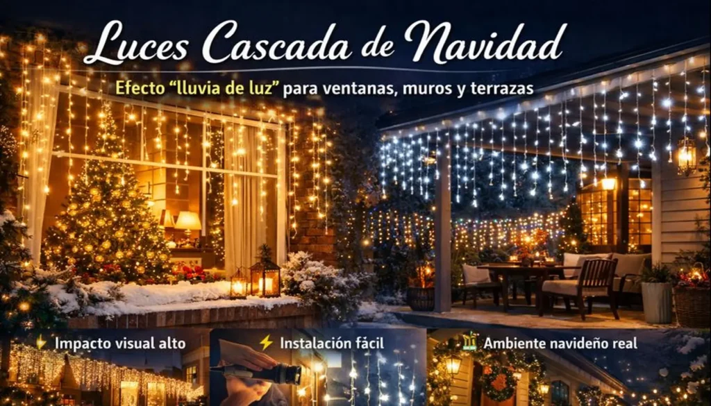Luces Cascada de Navidad: efecto “lluvia de luz” para ventanas, muros y terrazas