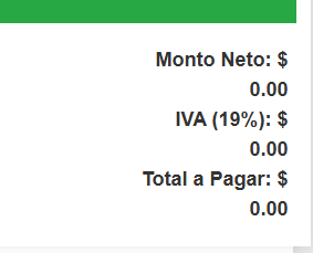 Monto Neto: $0.00 IVA (19%): $0.00 Total a Pagar: $0.00