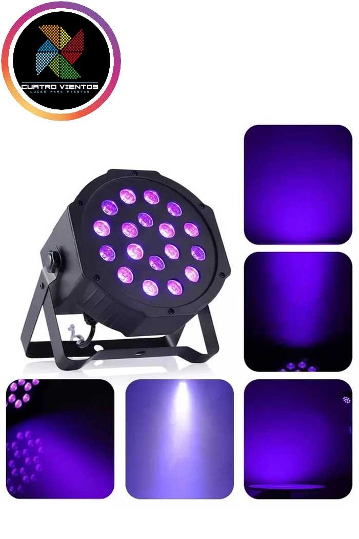 Este producto es un foco led de 18 led de luz led uv ultravioleta LED UV negra con 18x1w de potencia. Está diseñada específicamente para crear un efecto de iluminación fluorescente o «neón UV» en fiestas y eventos. Es fácil de instalar y viene con soporte para colgar , Ideal para usar en fiestas de espacios pequeños como fiestas en casa.-